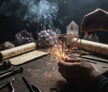 Desde Dínamos Telúricos que armonizan la energía de tu hogar hasta Núcleos Geodésicos que purifican tu entorno, cada artefacto es una fusión de cobre, cristal y geometría sagrada, sintonizado para un propósito de alto nivel.