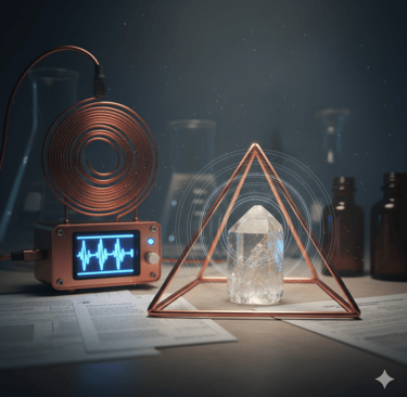 En nuestra Cámara de Sintonización, las fórmulas se armonizan con las proporciones de la Gran Pirámide. Fabricada en cobre, cuarzo blanco puro y orgonita, nuestra cámara emite frecuencias por medio de un transductor sónico durante al menos 33 minutos. Este proceso alinea la estructura molecular con patrones de coherencia, geometría sagrada y energía universal, intensificando aroma, textura y efecto.